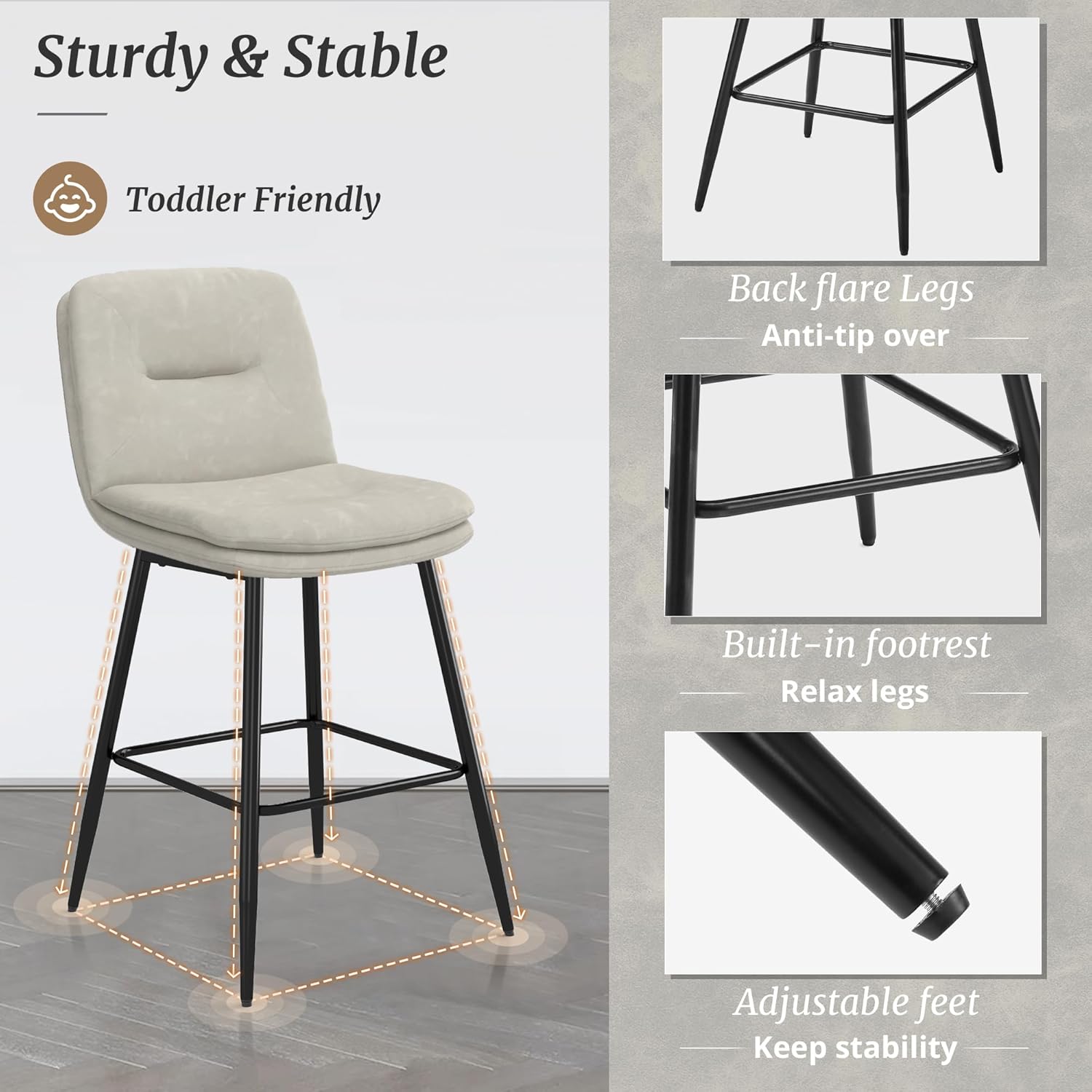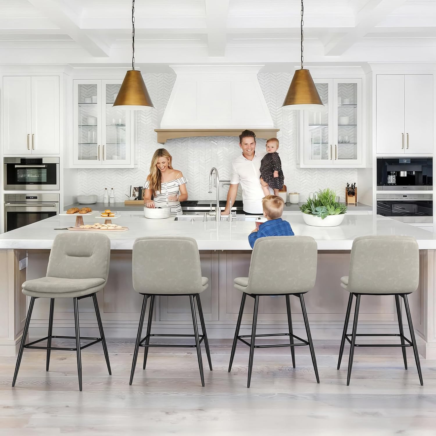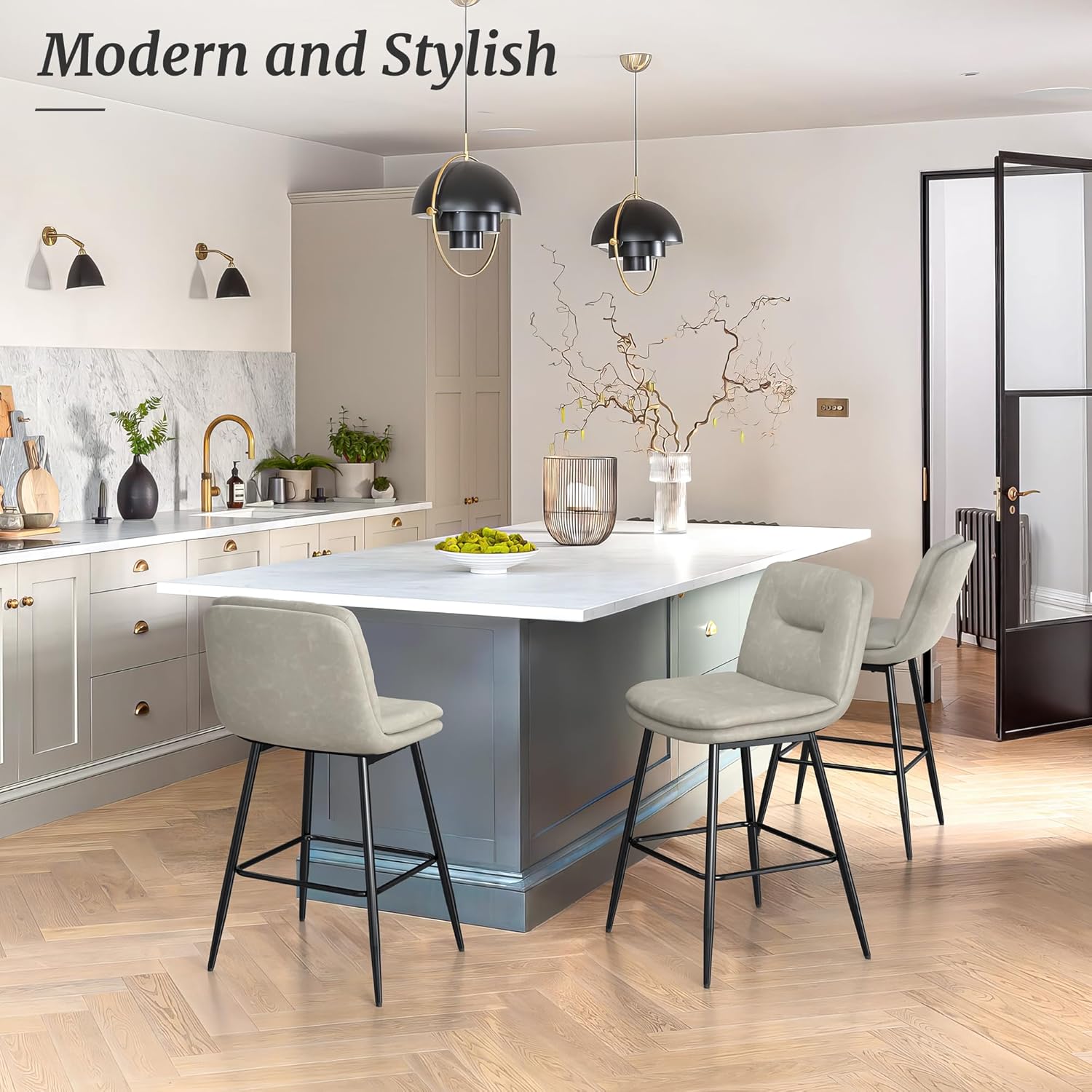 Constructed with a durable double-layer upholstered seat, these barstools provide both support and comfort for extended sitting. The faux leather material adds a touch of sophistication to your space, while the light beige gray color complements a variety of decor styles.
